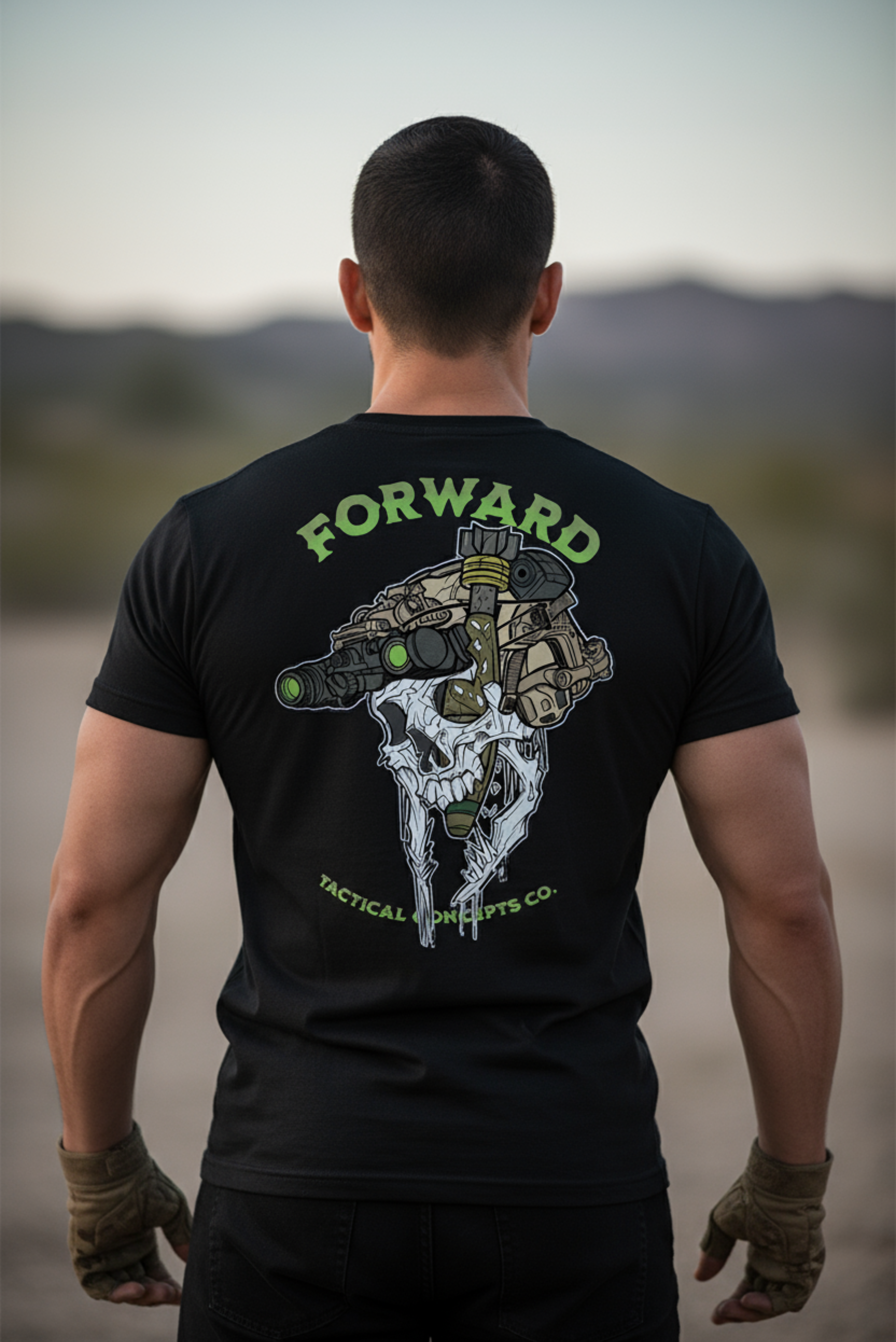 Essa peça carrega a simbologia da determinação absoluta: visão noturna, proteção total e munição pronta para o impacto.