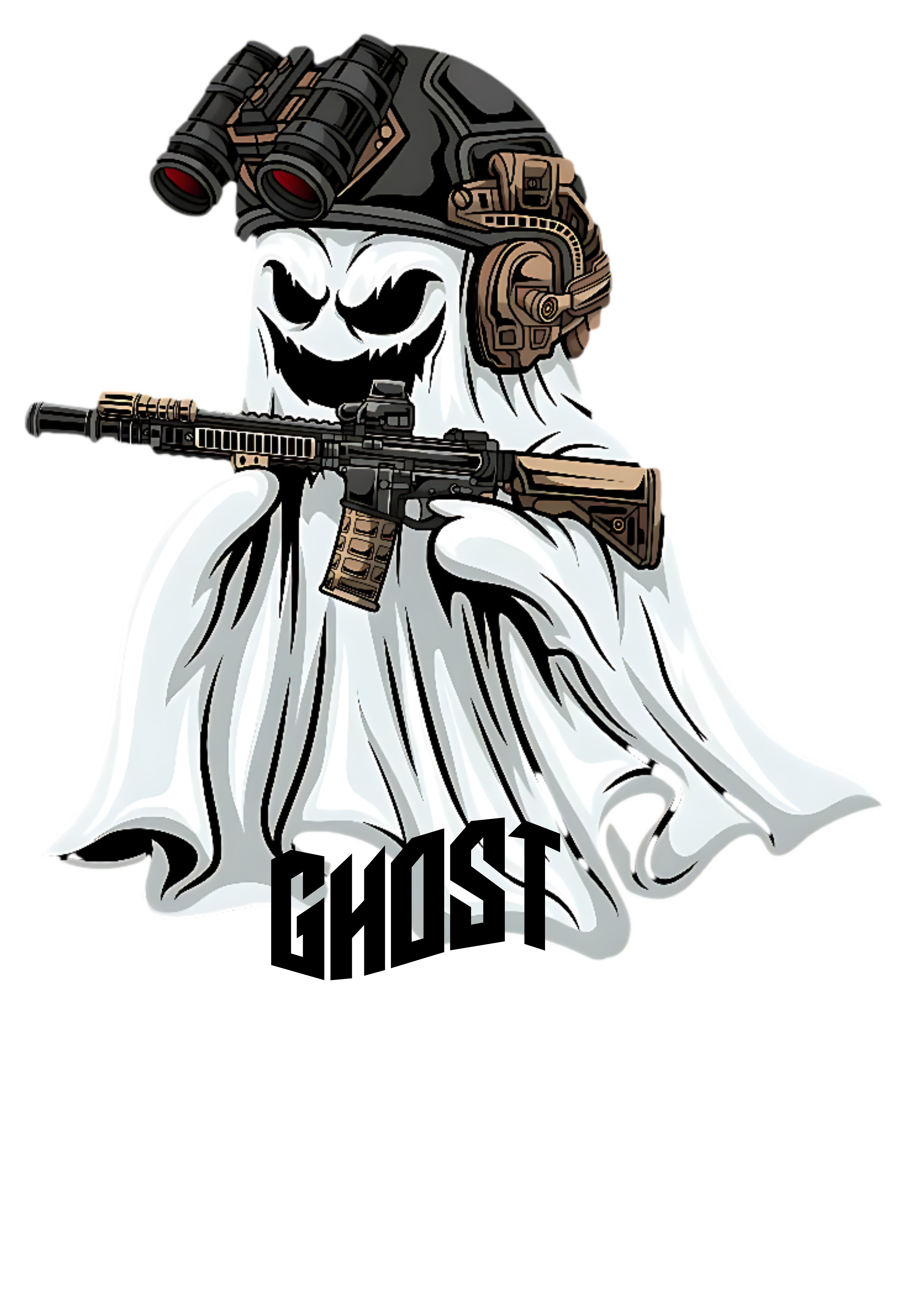 Com visual sombrio e simbólico de um fantasma tático, essa peça carrega a essência da presença silenciosa e mortal.