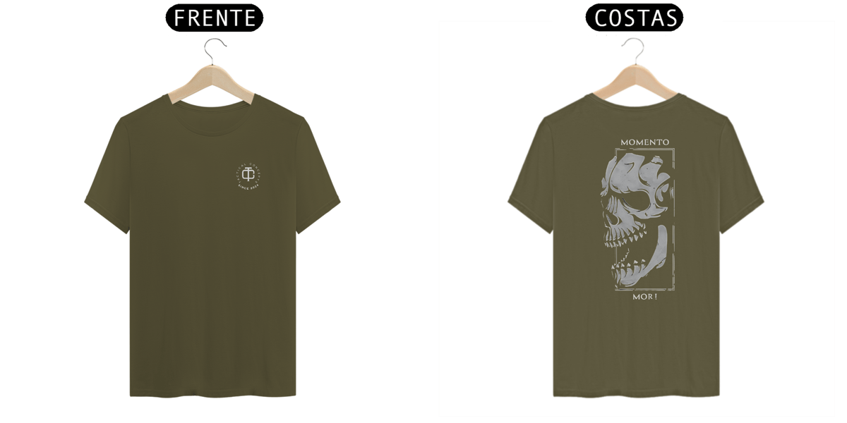 Essa estampa carrega um lembrete ancestral: o tempo é limitado, e a morte é certa. “Memento Mori” não é uma mensagem de fraqueza, mas de presença. Um chamado à disciplina, ao propósito e à ação consciente.