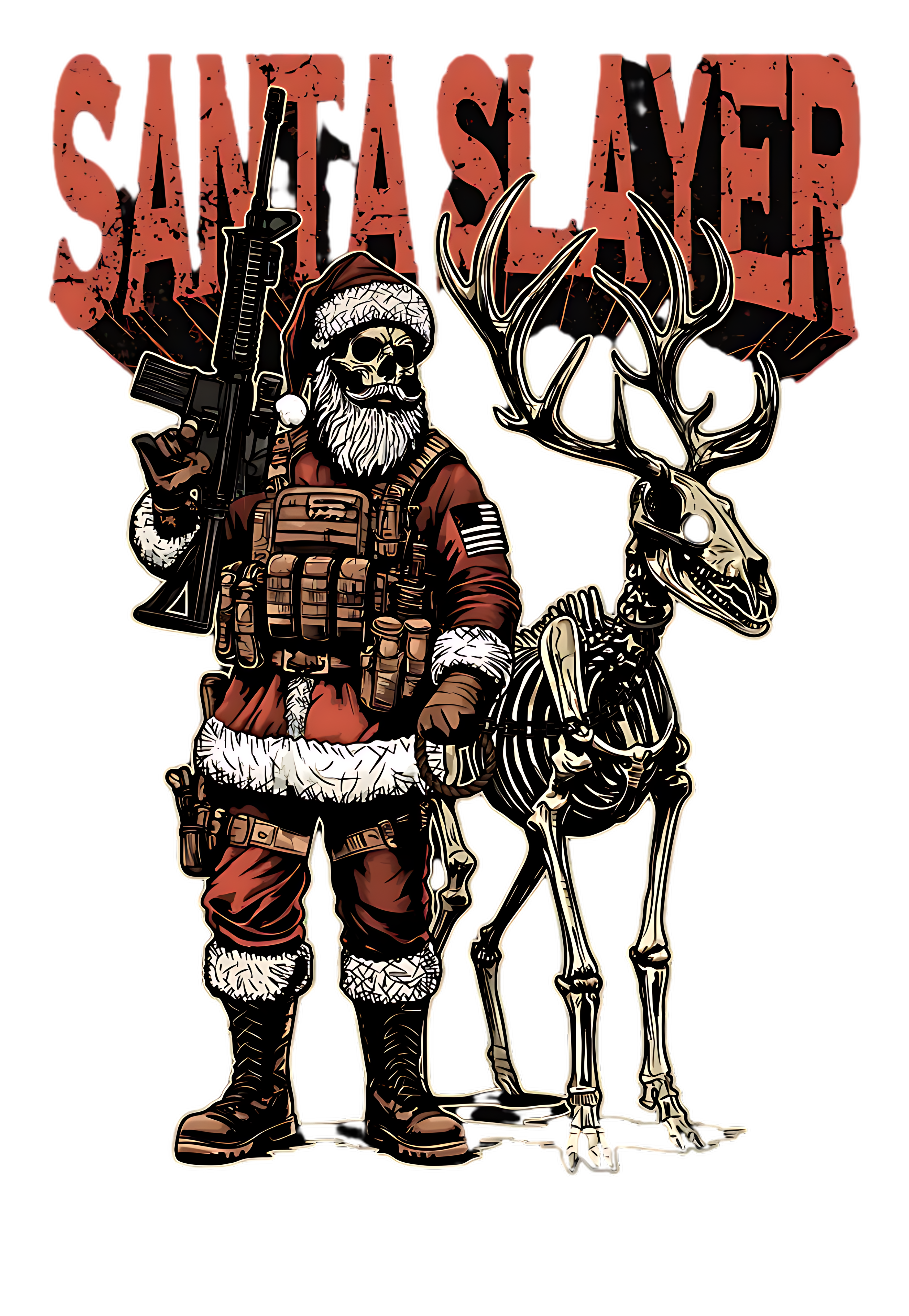 A estampa "Santa Slayer" entrega humor ácido, irreverência e identidade de combate, com um visual único que mistura o espírito natalino com o mindset operador.