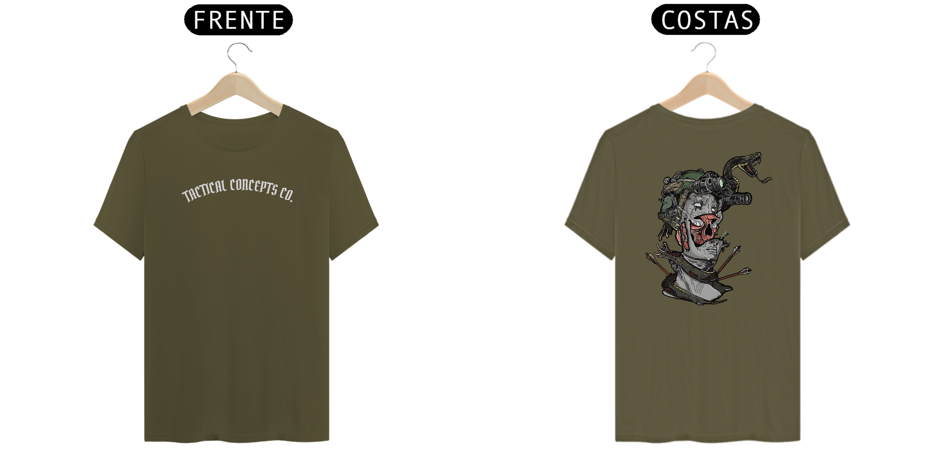 No peito, a marca da TC Co — como um selo de pertencimento tático.